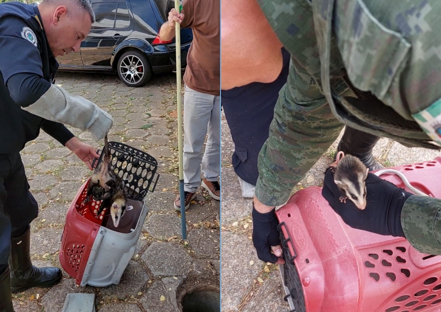 GCM Ambiental resgata mamãe saruê e filhotes na sede do DAEV 06/10/2025 11:33