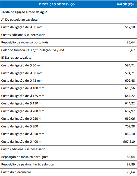 | Consumo até 10 m3 | 24,92 | 24,92 | 49,84 |