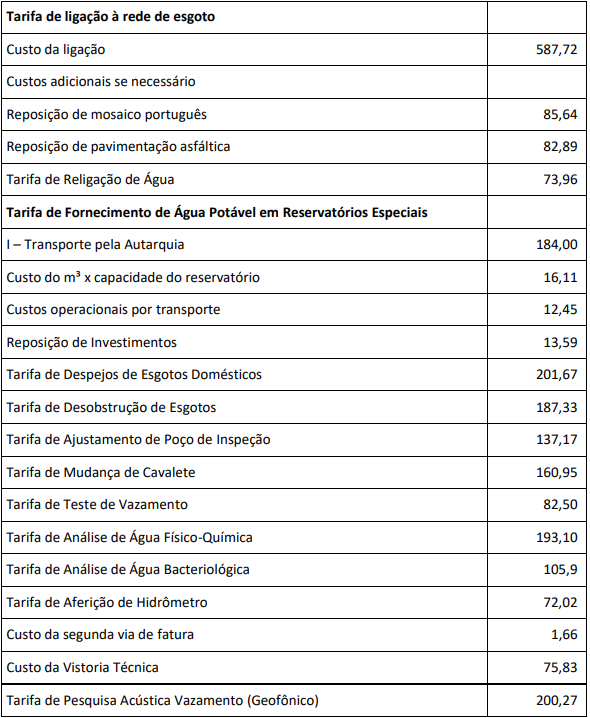 | Consumo até 10 m3 | 23,73 | 23,73 | 47,46 |