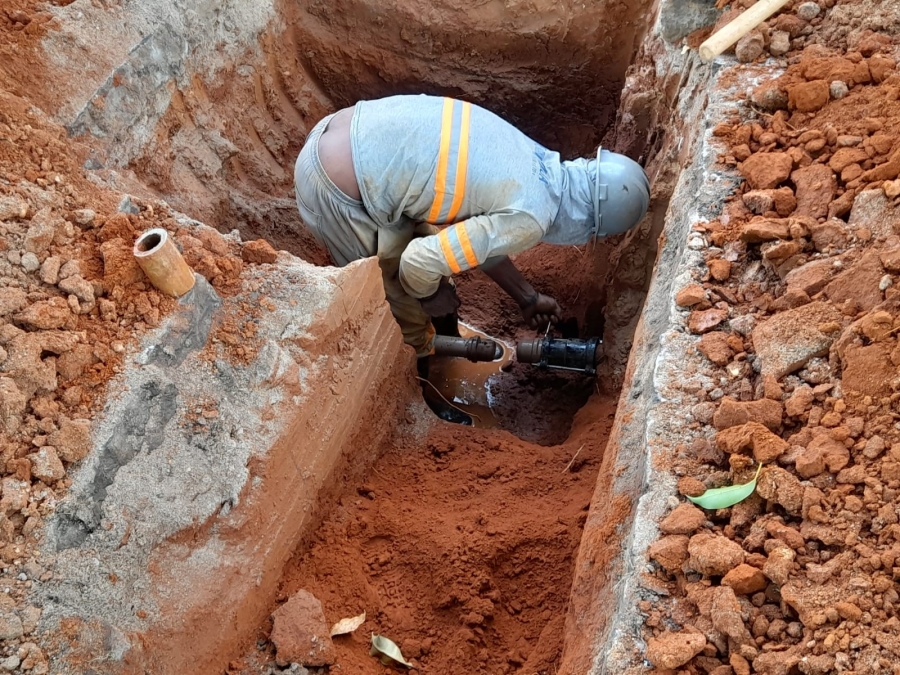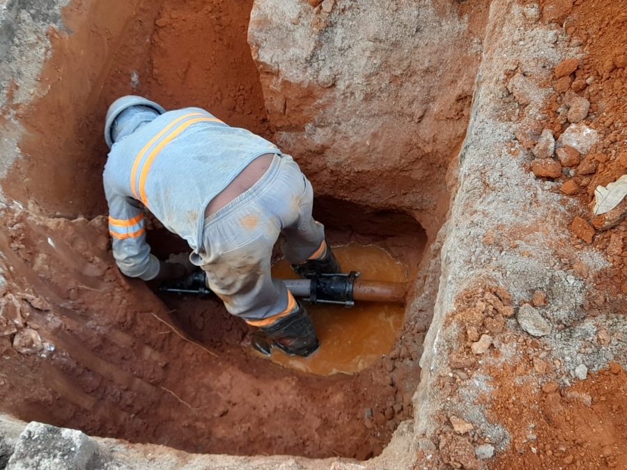 Serviço emergencial na rede de água teve início na manhã deste sábado e deve ser concluído até o início da tarde