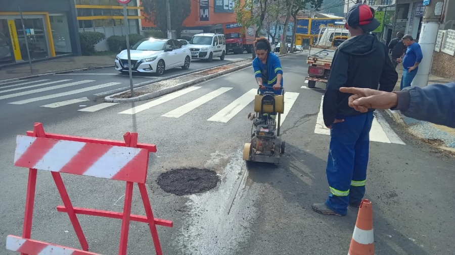 Intervenção ocorre na Rua Vicente Angelo Bissoto e deve ser concluída no fim da tarde desta terça-feira