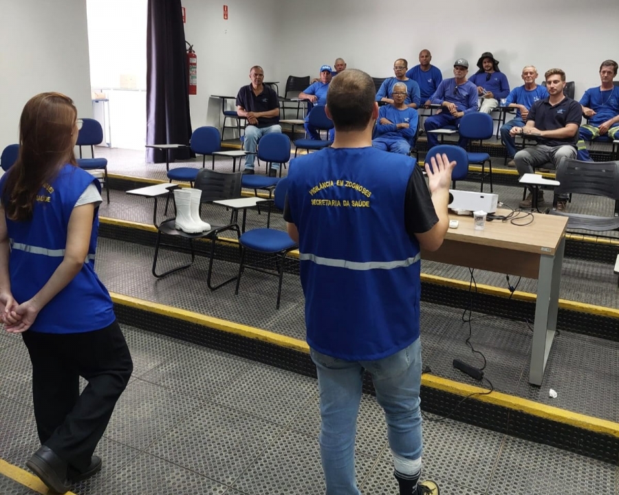 Servidores da manutenção receberam orientações da Divisão de Vigilância em Zoonoses sobre prevenção, sintomas e cuidados diante da doença transmitida pelo carrapato-estrela